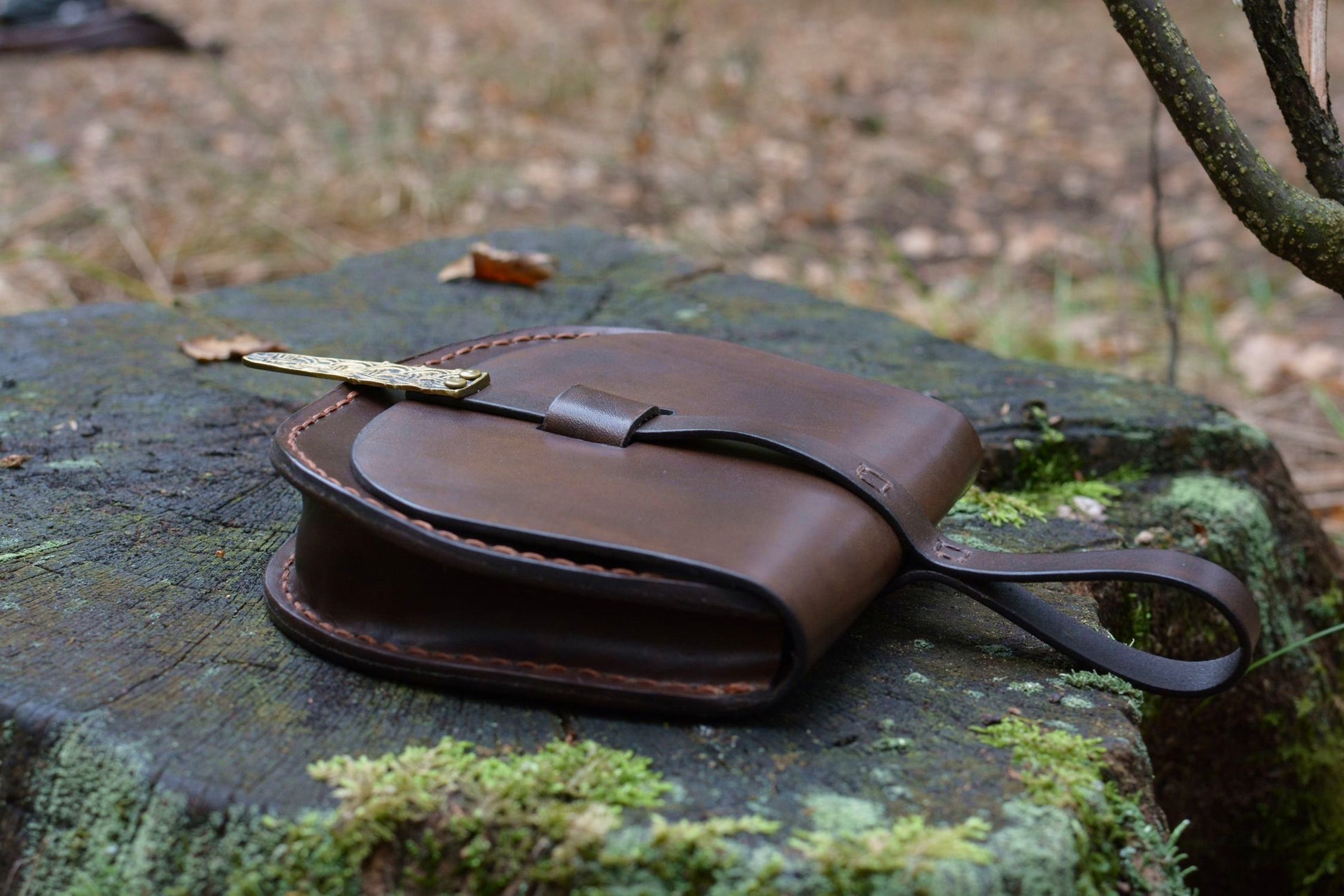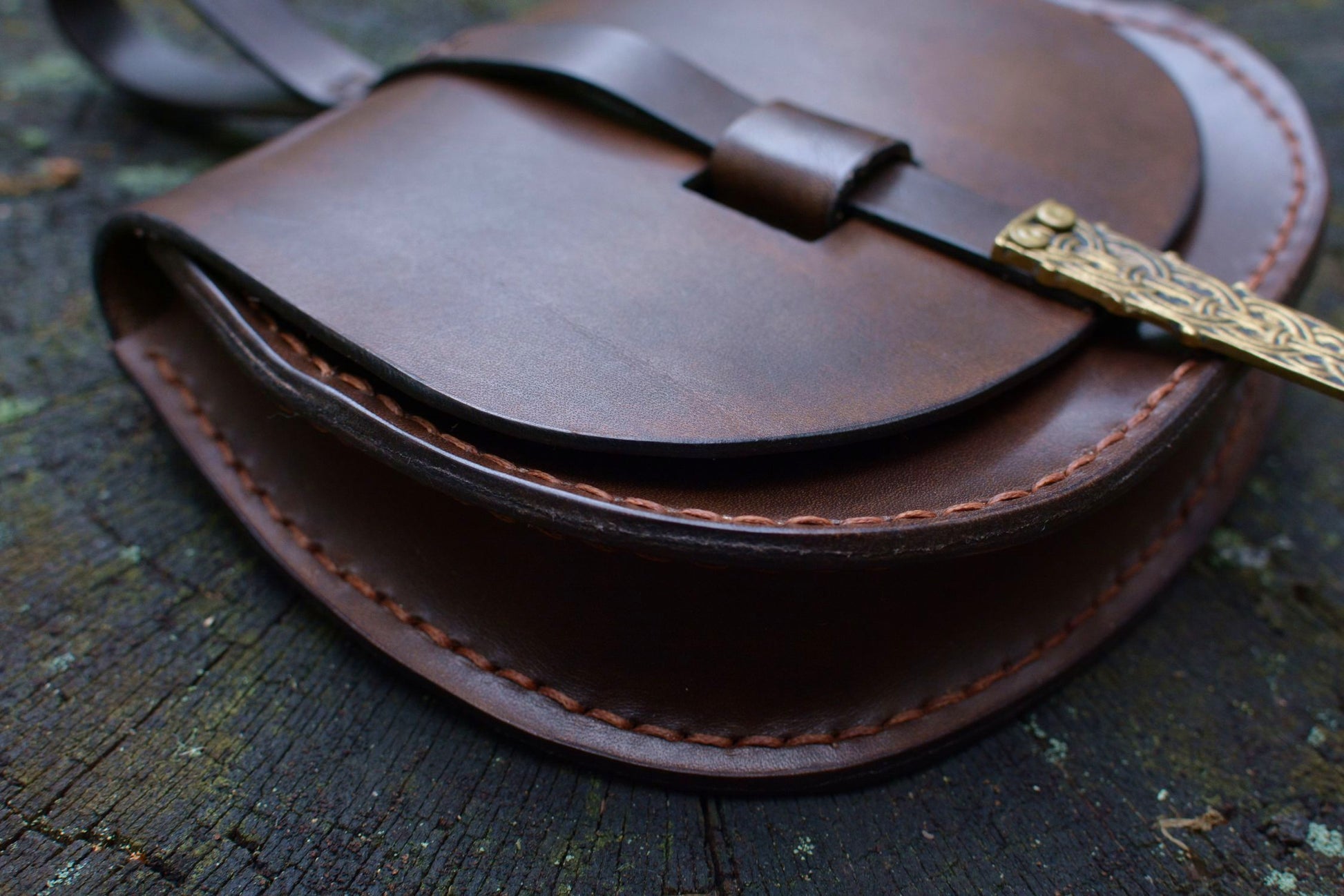 Cette sacoche en cuir inspirée d'un modèle scandinave du Xe siècle, fait partie des accessoires de base pour une tenue médiévale historique viking.