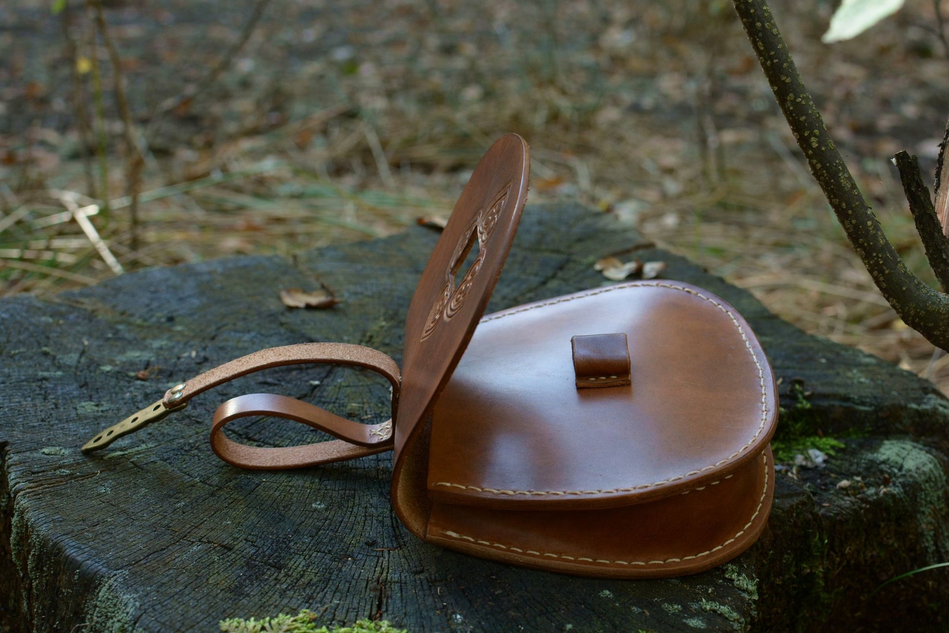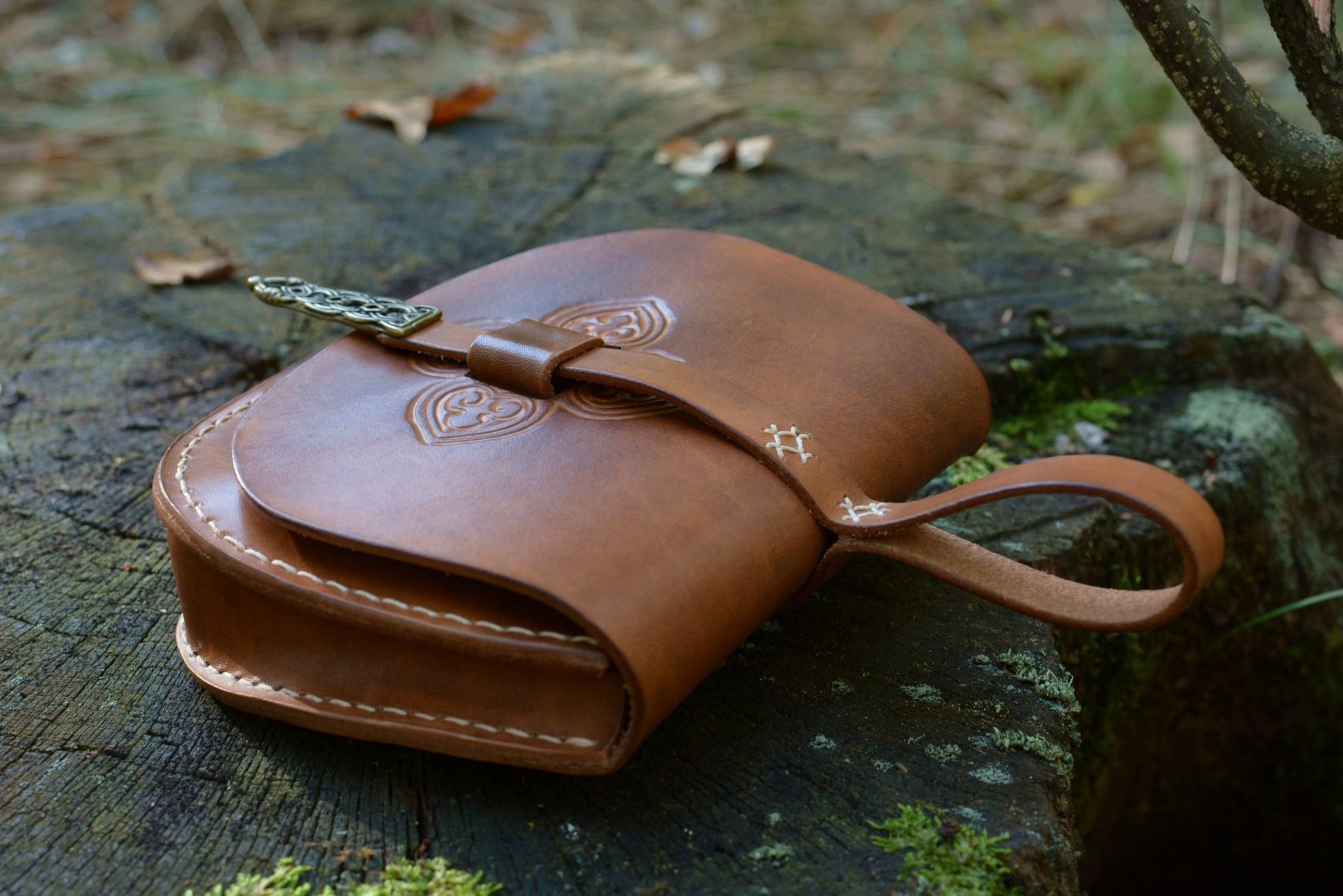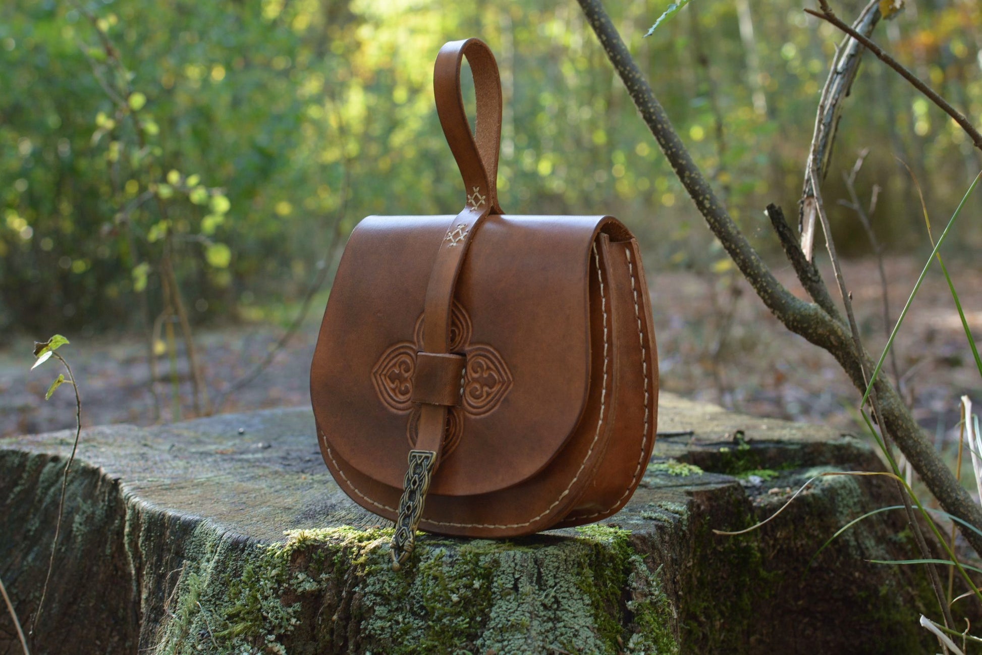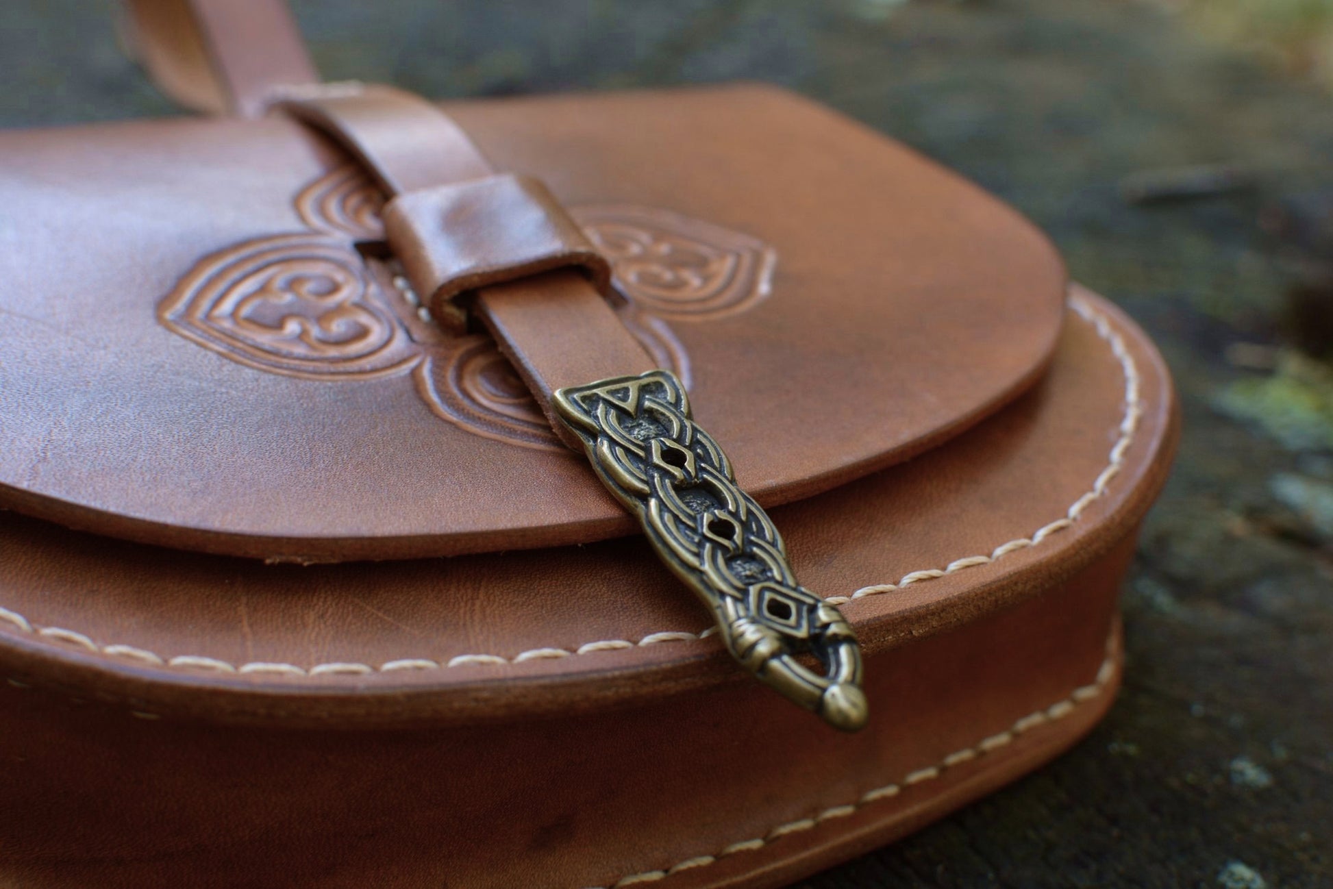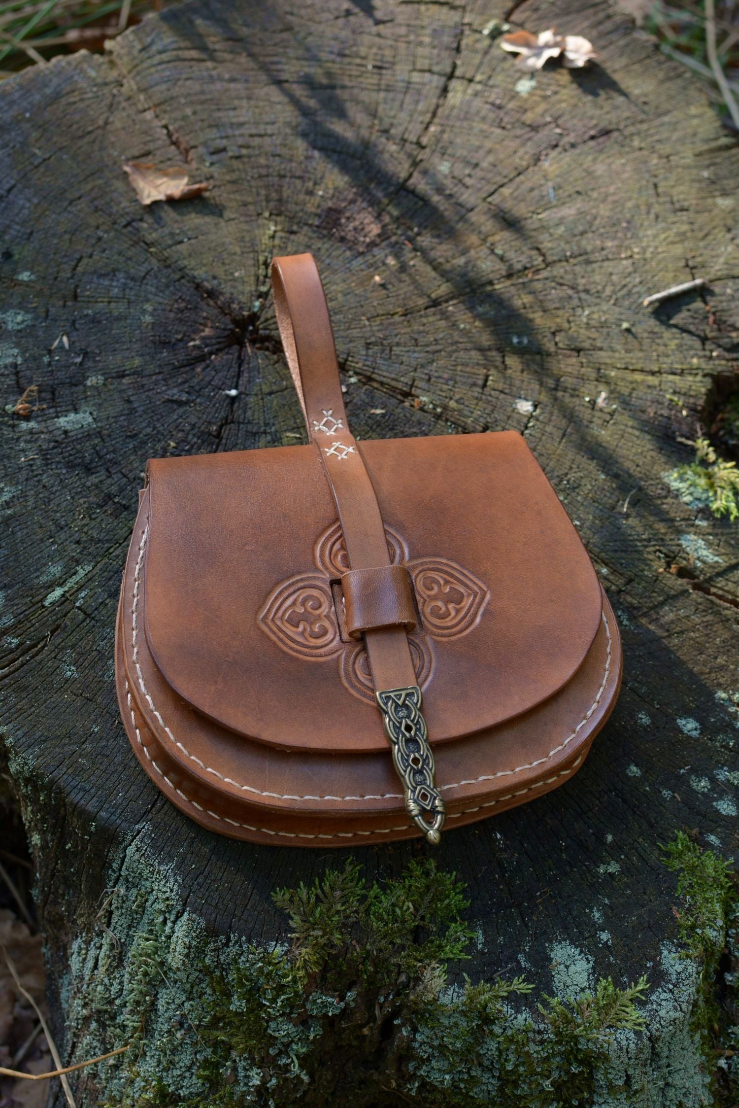 Cette sacoche en cuir inspirée d'un modèle scandinave du Xe siècle, fait partie des accessoires de base pour une tenue médiévale historique viking.