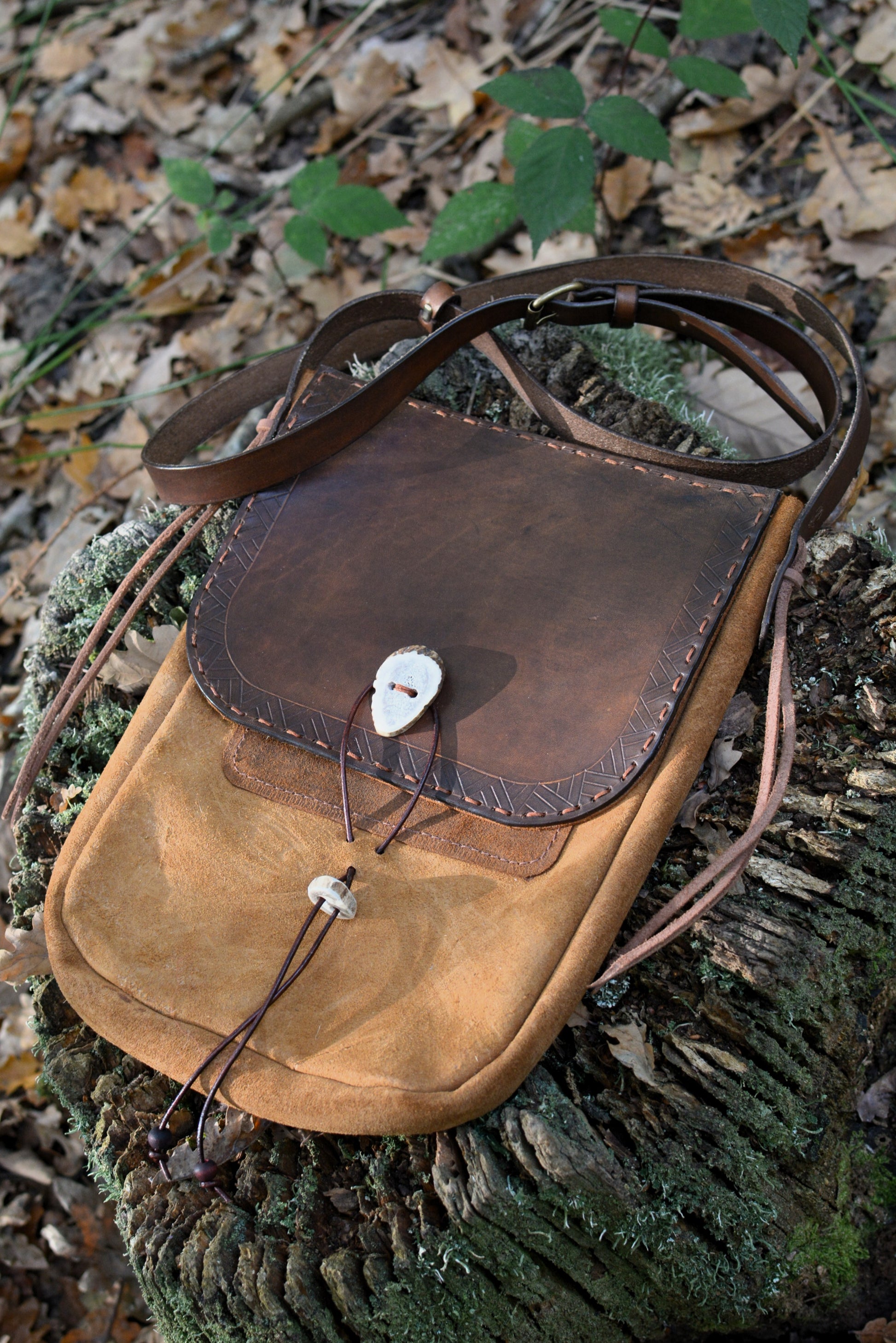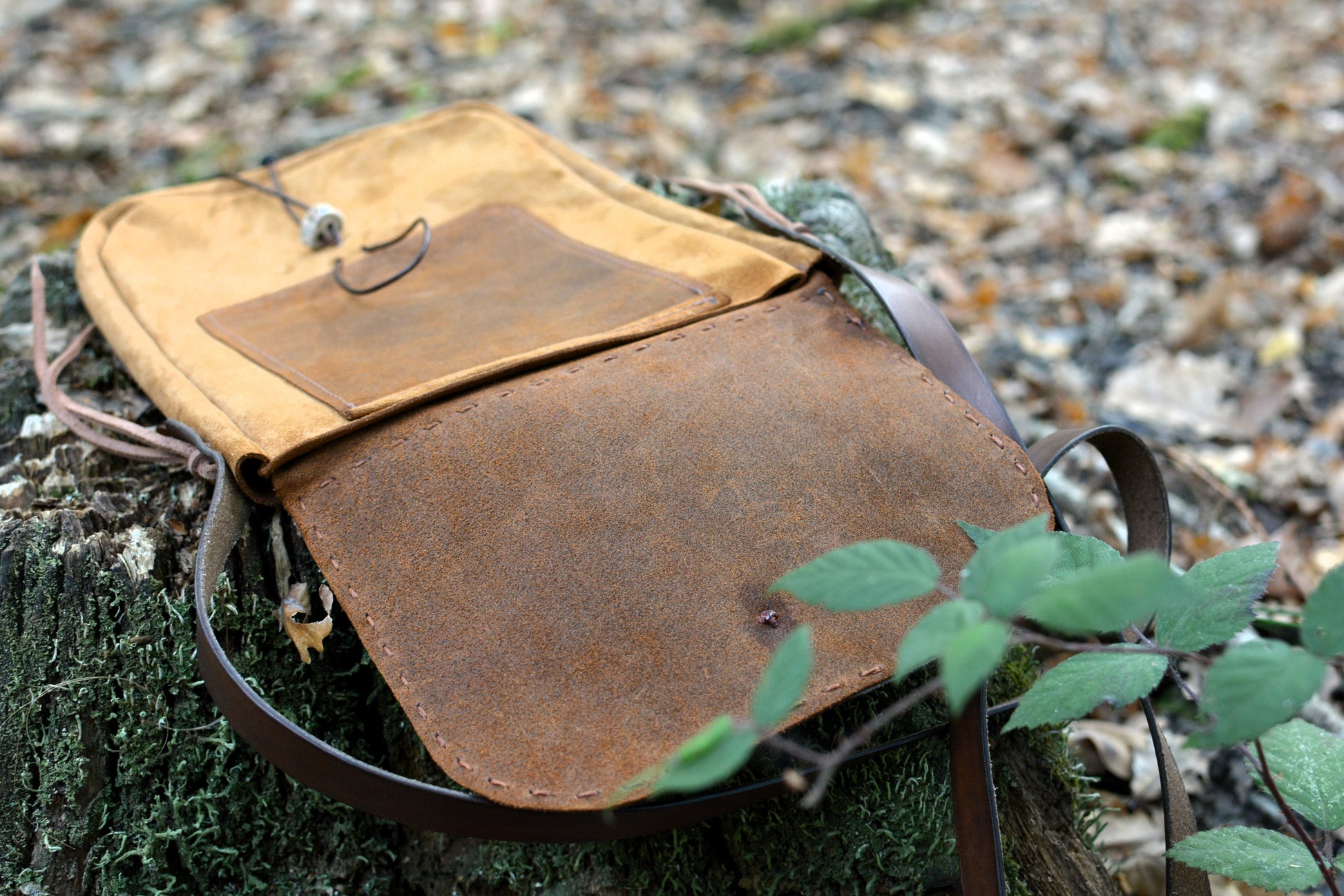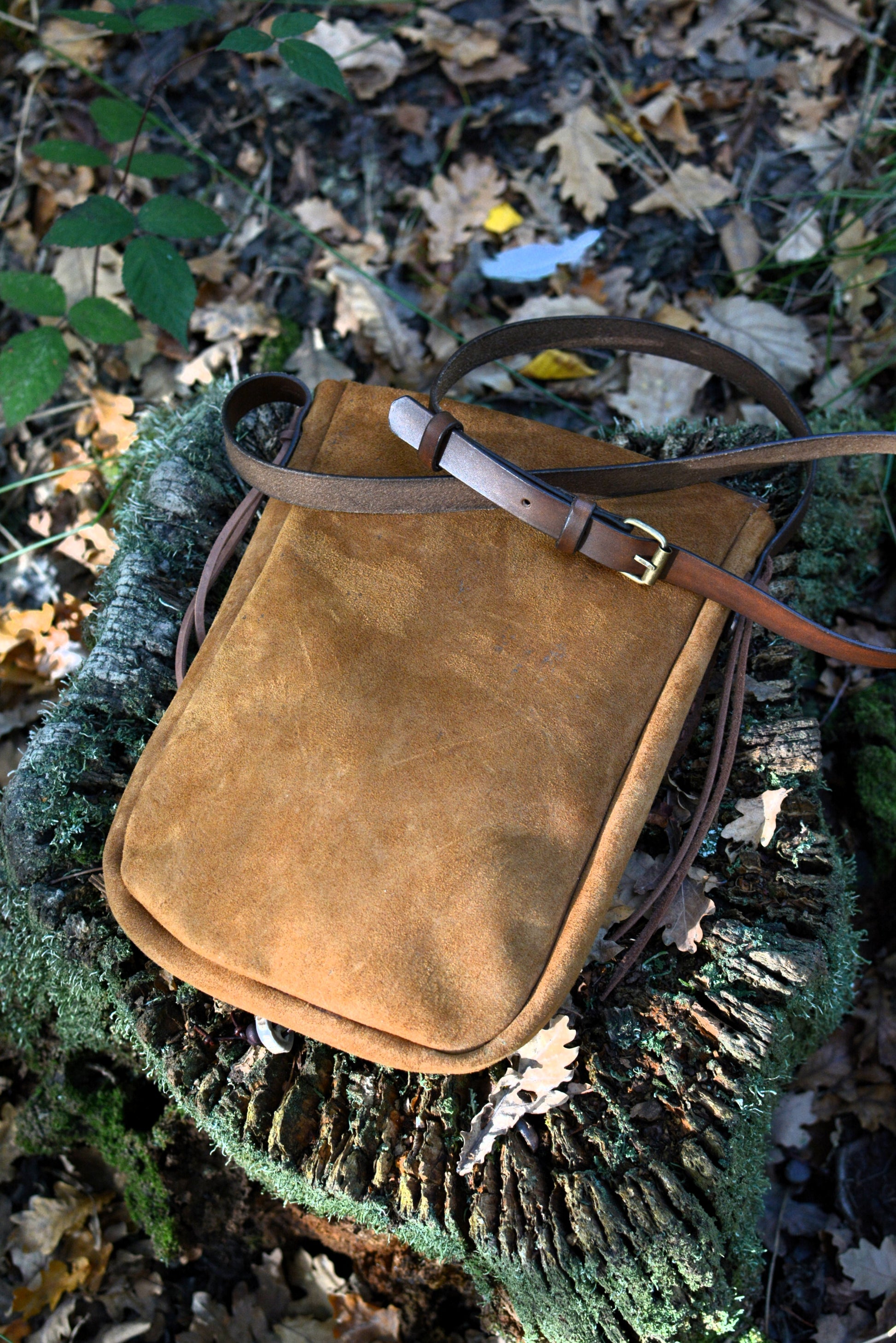 Cette sacoche souple et légère aux nuances naturelles est l'alliée parfaite de vos aventures en forêt.