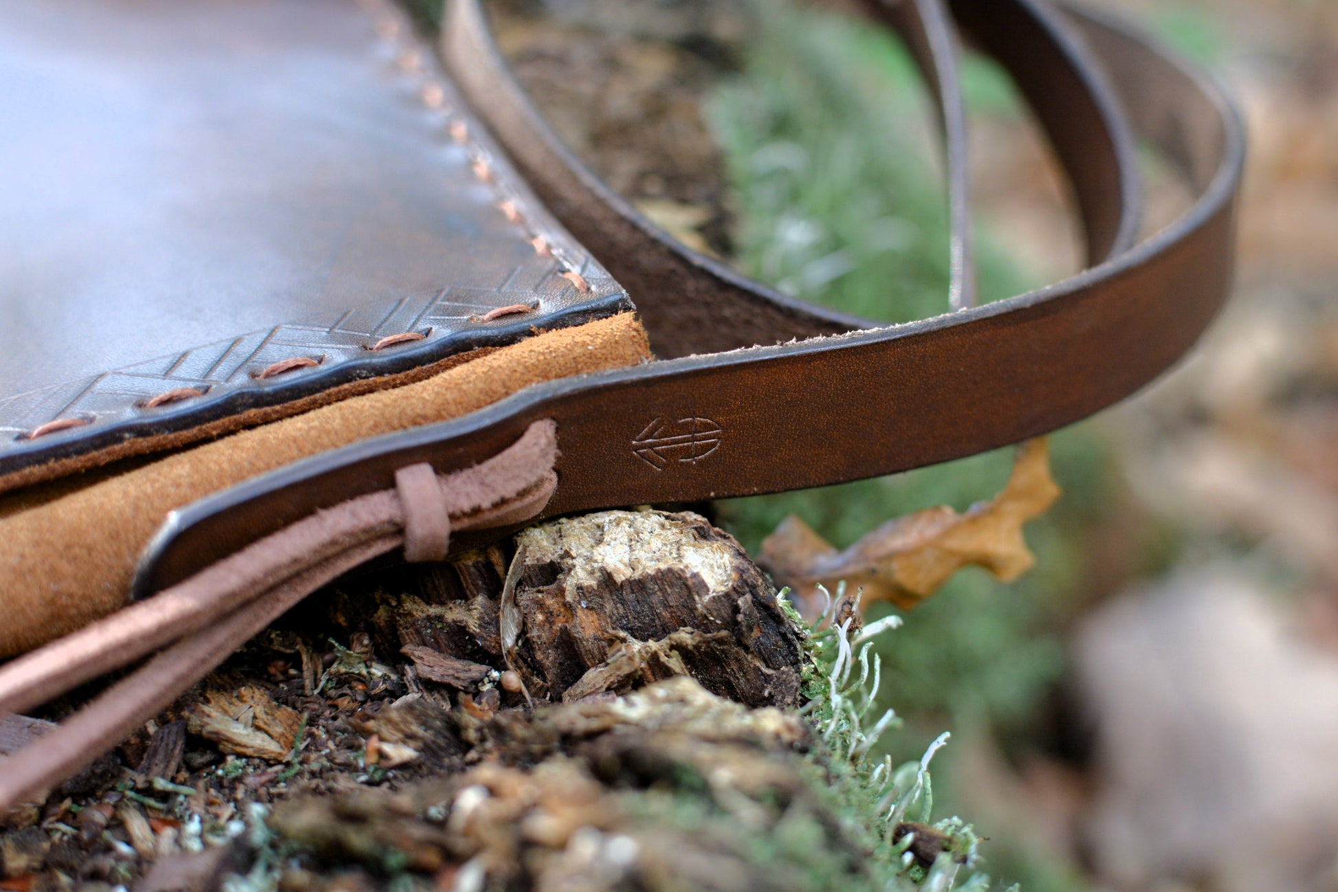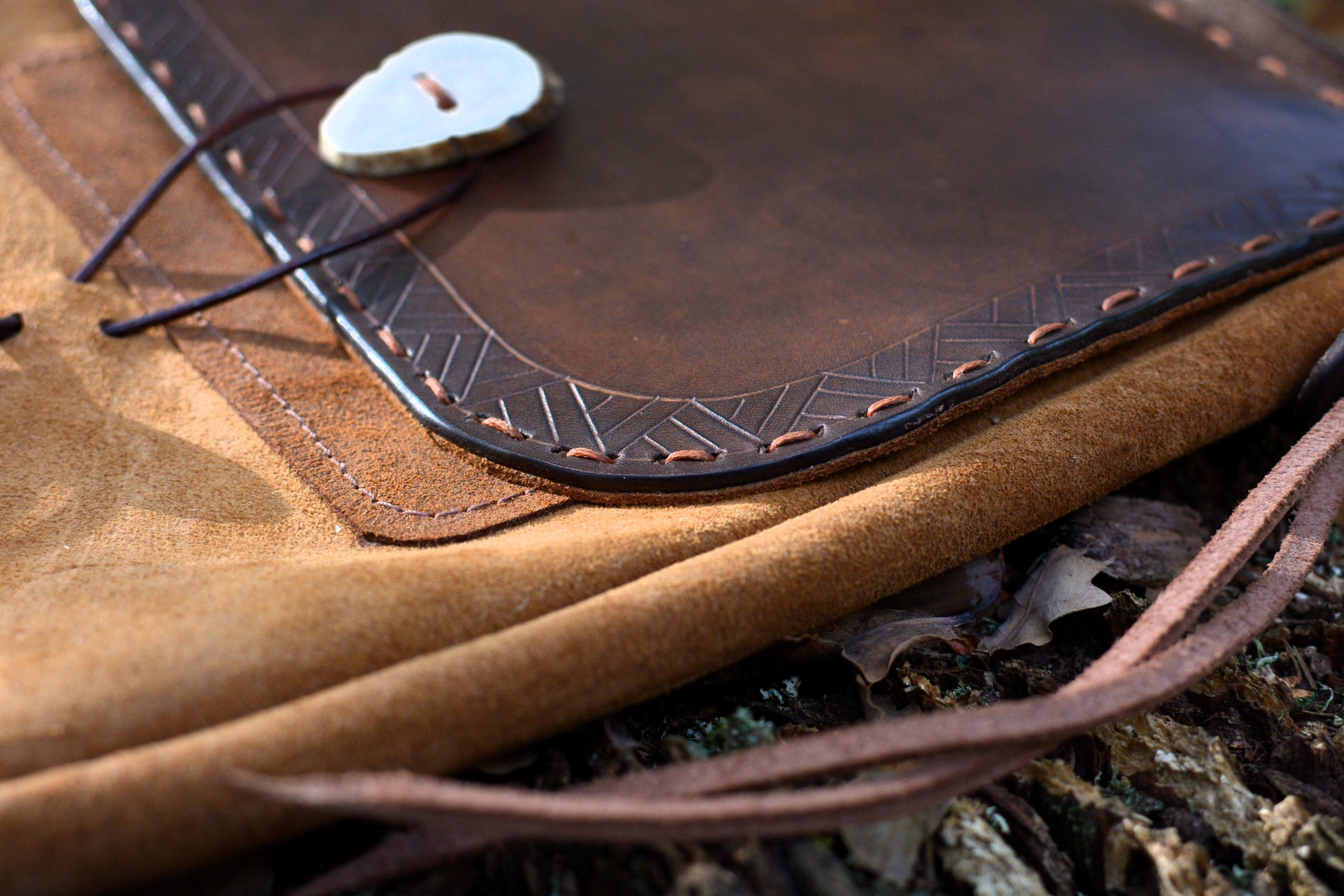 - Rabat en cuir tannage végétal avec motifs traditionnels nordiques.